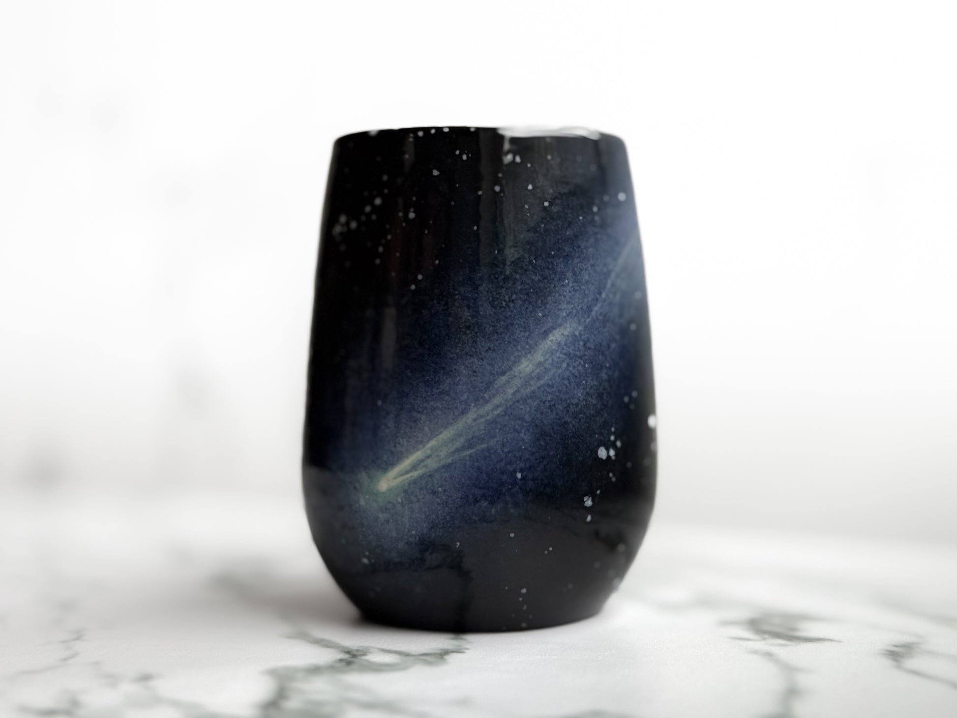 Earthenware pottery is delicate low-fire ceramic. Dishwasher safe, but I recommend hand-washing to keep in space-tastic shape.